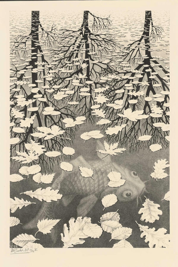 Figure 4. Three Worlds, by M. C. Escher (lithograph, 1955) from 'Museum Escher in Het Paleis' website