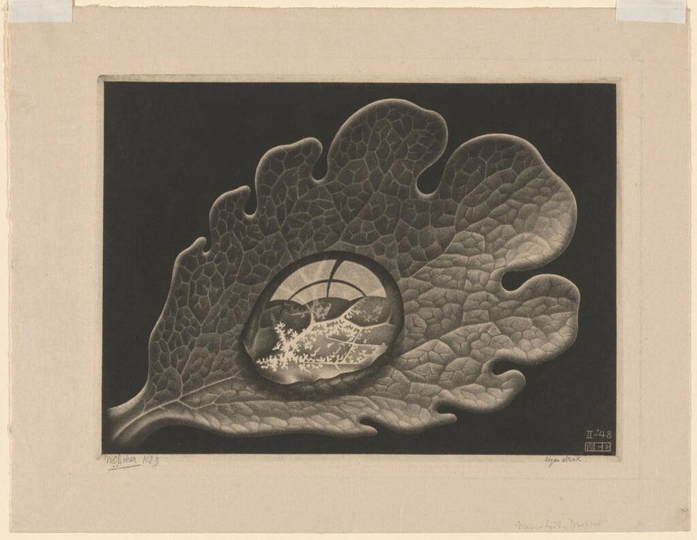 Figure 6. Dewdrop, by M. C. Escher (mezzotint, 1984) from Digital Commonwealth website