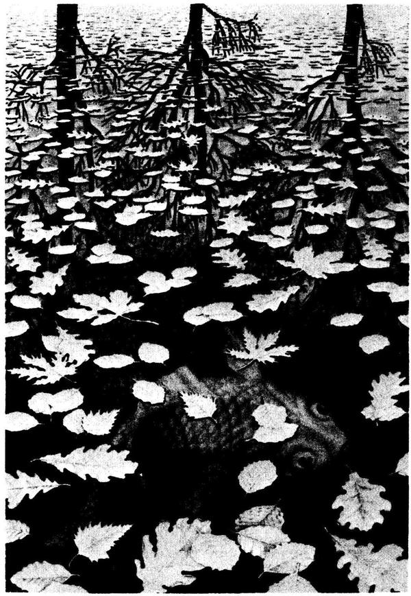 Figure 3. Three Worlds, by M. C. Escher (lithograph, 1955) printed in GEB